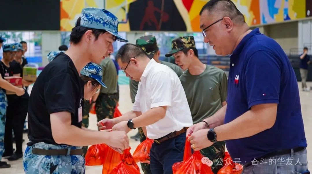 集訓期間,華友鈷業衢州產業園的領導們來到現場慰問大學生,代表公司歡迎他們的到來,并為學生們送上慰問物資,傳遞關懷和溫暖。各位領導對學生們在軍訓中展現出的艱苦奮斗精神表示高度肯定,同時期待著他們在未來的學習和工作中,能夠繼續發揚軍訓中的精神,艱苦奮斗,追求卓越,不斷克服新的挑戰,向更美好的未來沖刺。