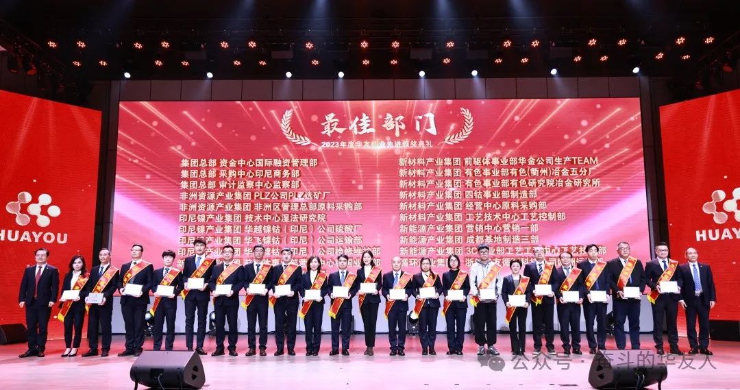 1月19日,以“夢想 奮進 榮耀”為主題的華友鈷業2023年度先進頒獎典禮在集團總部舉行。