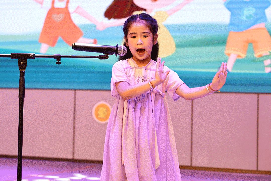 活動伊始,幾位小朋友輪番上臺表演,有古典美的胭脂妝表演、有氣勢恢宏的“踏山河”歌唱、有可愛的小豬吃飽飽的表演,亦有古箏和陶笛的樂器展示等等,自信的向在場所有嘉賓展示自己的才藝。現(xiàn)場觀看表演的家長們相機(jī)聲、掌聲響成一片。