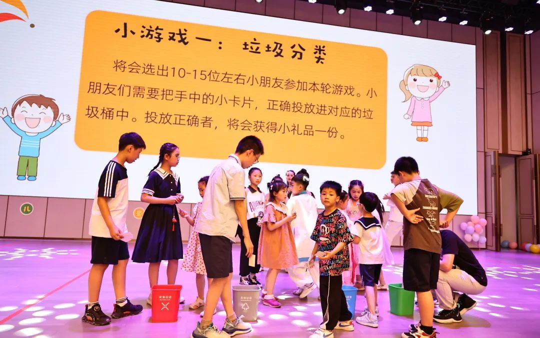 在接下來穿插的“小螃蟹運球”、“你拋我接”、“夾球跳”以及“保齡球”等小游戲環(huán)節(jié)中,小朋友和家長出色的配合表現(xiàn)讓現(xiàn)場不時爆發(fā)熱烈的掌聲。小朋友們勇于挑戰(zhàn),努力拼搏,與家長間的親情互動更是把整場晚會推向高潮。期間,更有寓教于樂的垃圾分類、安全隱患識別大挑戰(zhàn)等搶答環(huán)節(jié),進(jìn)一步增強(qiáng)小朋友們的垃圾分類意識和安全意識。