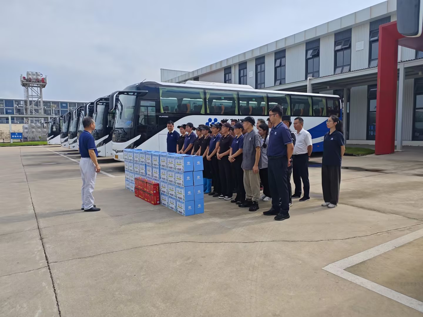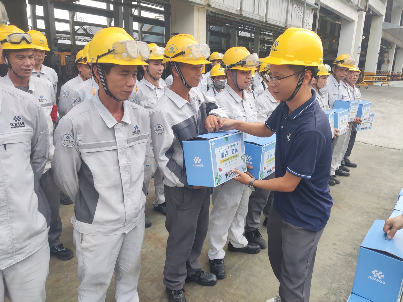慰問活動(dòng)中,各工會(huì)主席及單位行政負(fù)責(zé)人親手將慰問品發(fā)放到員工手上,耐心叮囑大家在堅(jiān)守一線工作時(shí)務(wù)必做好防暑降溫工作。華友廣西產(chǎn)業(yè)園工會(huì)聯(lián)合會(huì)主席徐學(xué)良在參加華友工程公司工會(huì)慰問活動(dòng)時(shí)強(qiáng)調(diào):“當(dāng)前天氣炎熱,集團(tuán)領(lǐng)導(dǎo)始終心系奮戰(zhàn)在一線的各位奮斗者,特別囑咐我們要扎實(shí)做好高溫慰問工作。大家在堅(jiān)守崗位的同時(shí),一定要注意勞逸結(jié)合,合理安排工作與休息時(shí)間,切實(shí)把防暑降溫措施落實(shí)到位。更要時(shí)刻牢記,將防暑降溫與安全生產(chǎn)緊密結(jié)合,絲毫不能松懈,確保每一位員工都能開開心心上班來,平平安安回家去。”