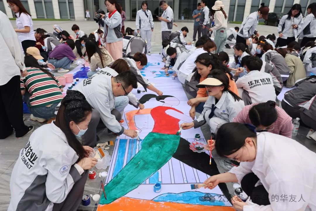 With the spreading of the canvas, the second project began. During the activity, everyone picked up the paintbrushes in their hands, put up the colourful paints, and waved their love and sincerity on the canvas. Through nearly one hour of joint creation and depiction, the huge painting was gradually completed, and every stroke reflected the style and charm of Huayou people, and everyone was an indispensable part of the process of the birth of this huge painting.