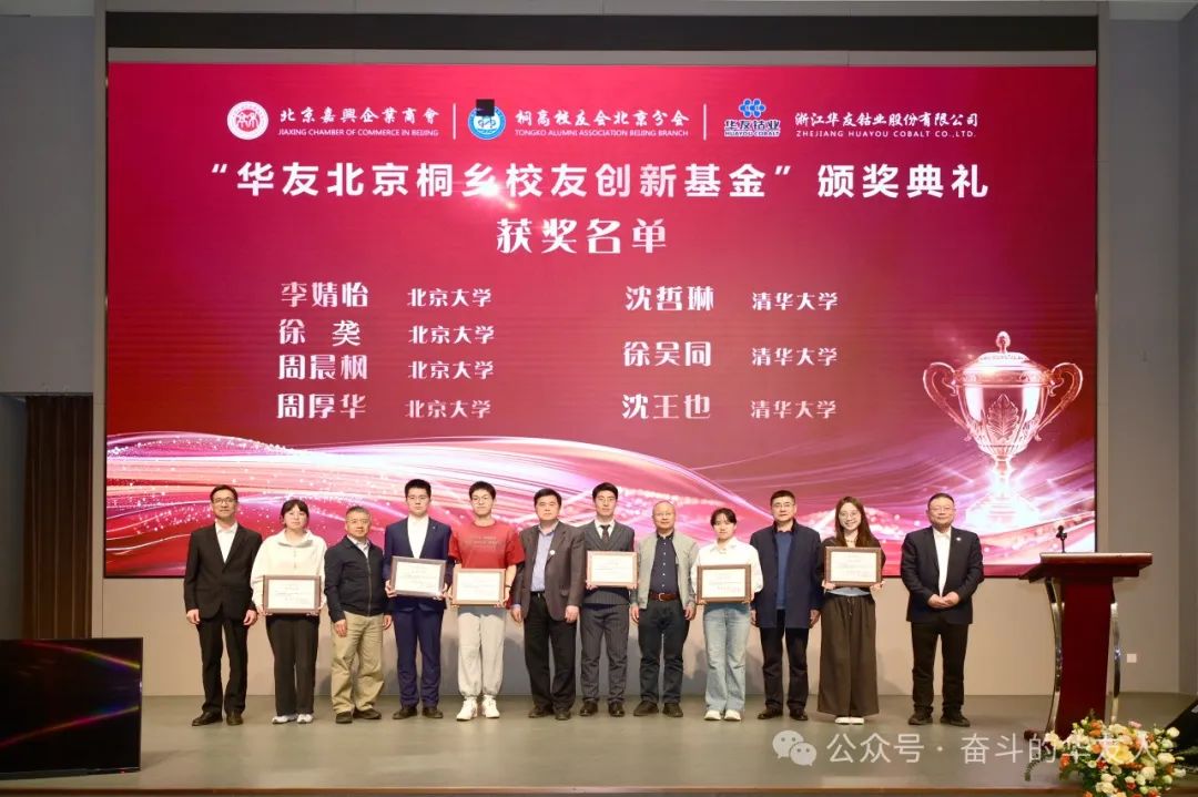 On March 22, the inaugural Huayou Beijing-Tongxiang Alumni Innovation Fund Awards Ceremony was held in Beijing, co-hosted by the Beijing Jiaxing Chamber of Commerce and the Beijing Branch of Tongxiang Senior High School Alumni Association. The event brought together government officials, industry leaders, and alumni to celebrate outstanding innovative achievements, strengthen hometown ties, and discuss collaborative development .