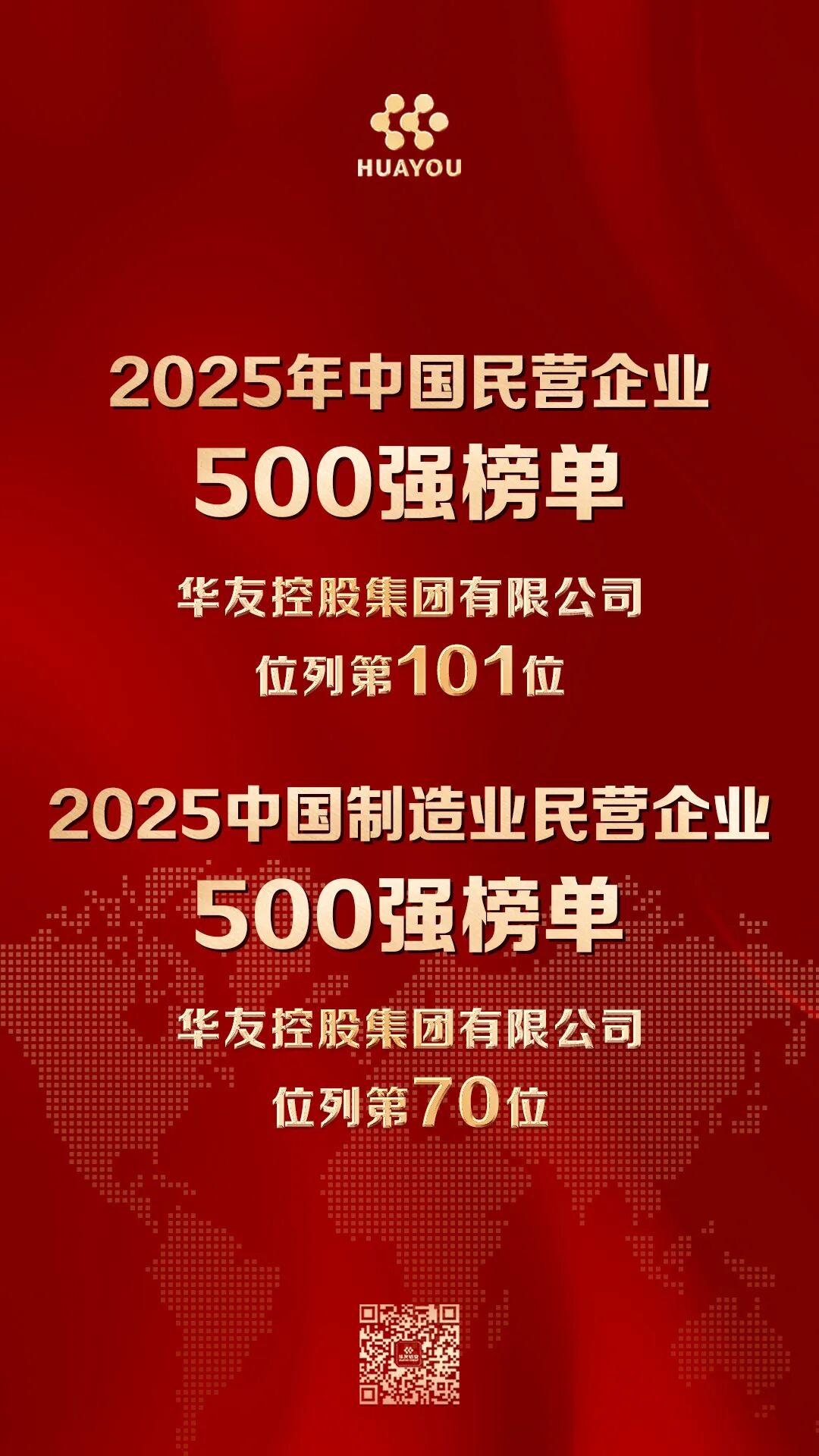China's Top 500 Private Enterprises: Huayou Ranks 101st!