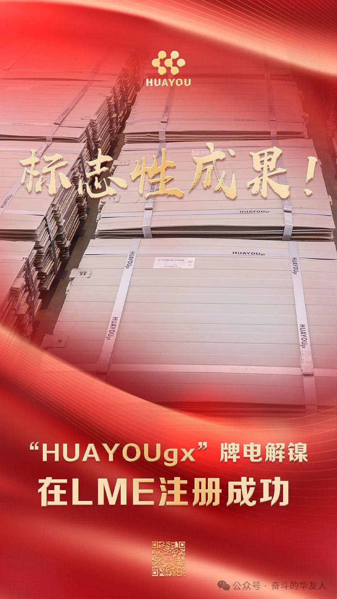 又一標志性成果!“HUAYOUgx”牌電解鎳在LME注冊成功