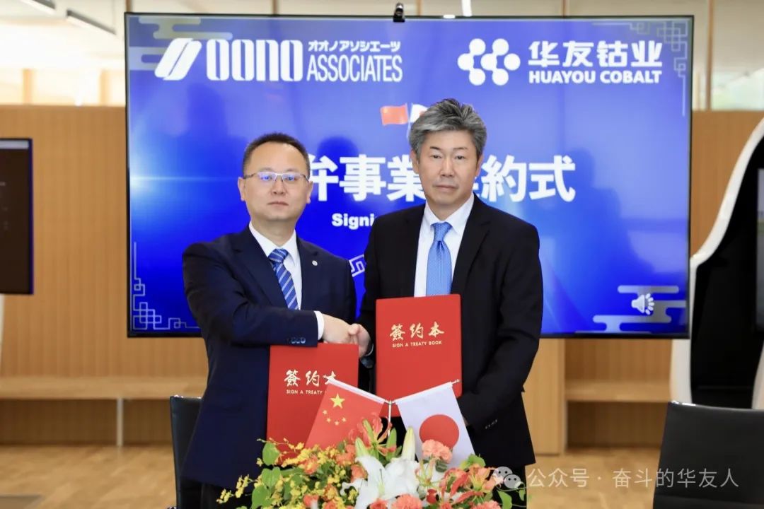 為構建產業鏈協同格局,打通海外循環路徑。5月14日,浙江華友循環科技有限公司(以下簡稱“華友循環”)與日本大野開發股份有限公司(以下簡稱“大野開發”)在大野開發日本松山市總部正式簽署合資協議。大野開發集團社長山下、華友鈷業副總裁級干部張炳海、華友循環總經理鮑偉出席簽約儀式。