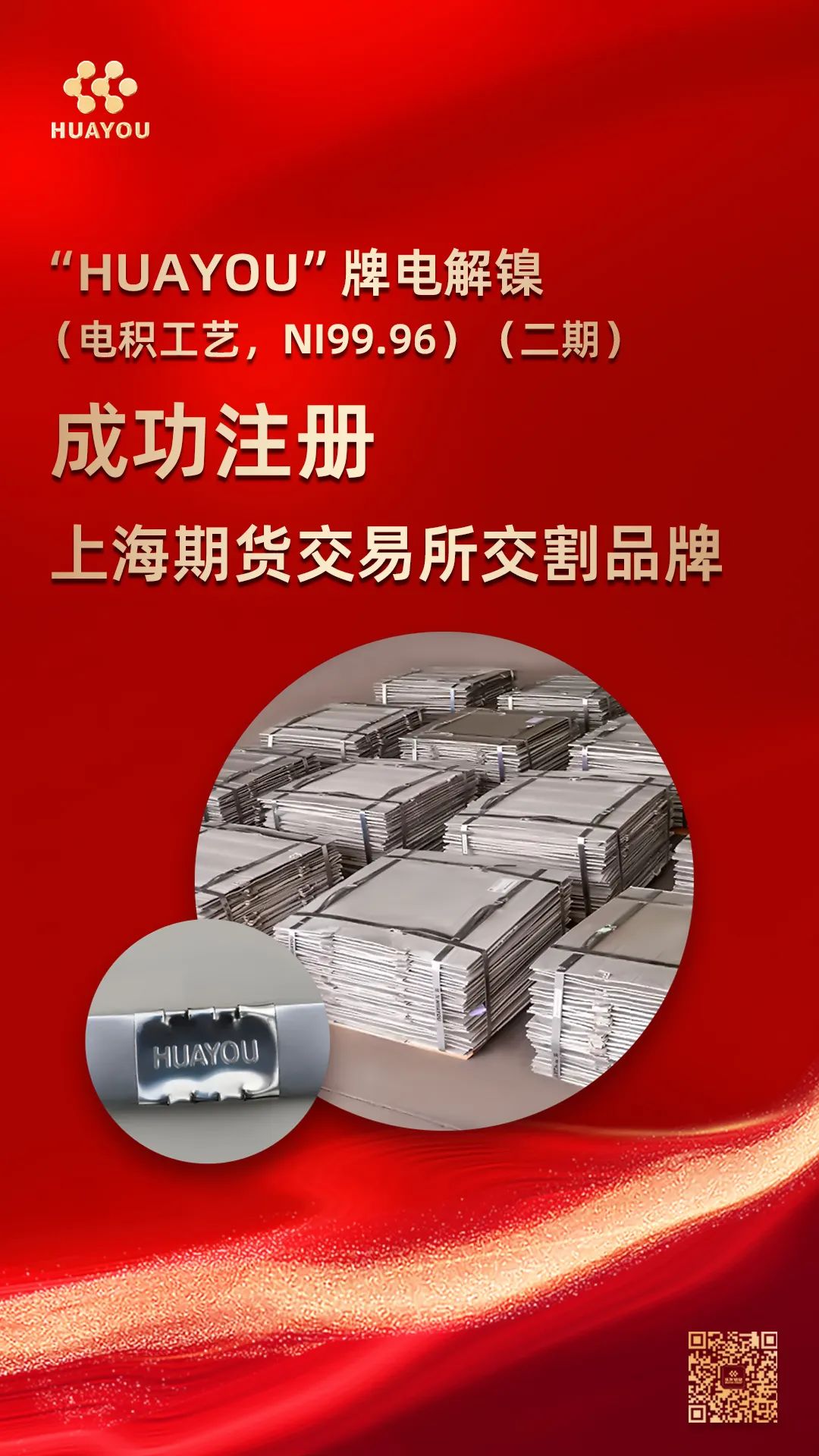 “HUAYOU”牌電解鎳,再次成功注冊!