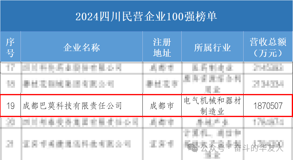 10月29日,2024四川民營企業100強發布會在自貢舉行。會上,四川省工商聯發布“2024四川民營企業100強”榜單,此外還首次發布“2024年四川制造業民營企業100強”、“2024年四川服務業民營企業50強”,華友成都巴莫公司位列“2024年四川民營企業100強”榜單第19名、“2024年四川制造業民營企業100強”榜單第17名,連續三年登榜。
