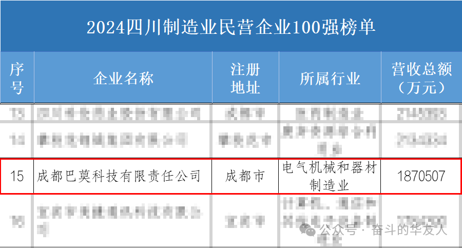 2024四川制造業民營企業100強榜單