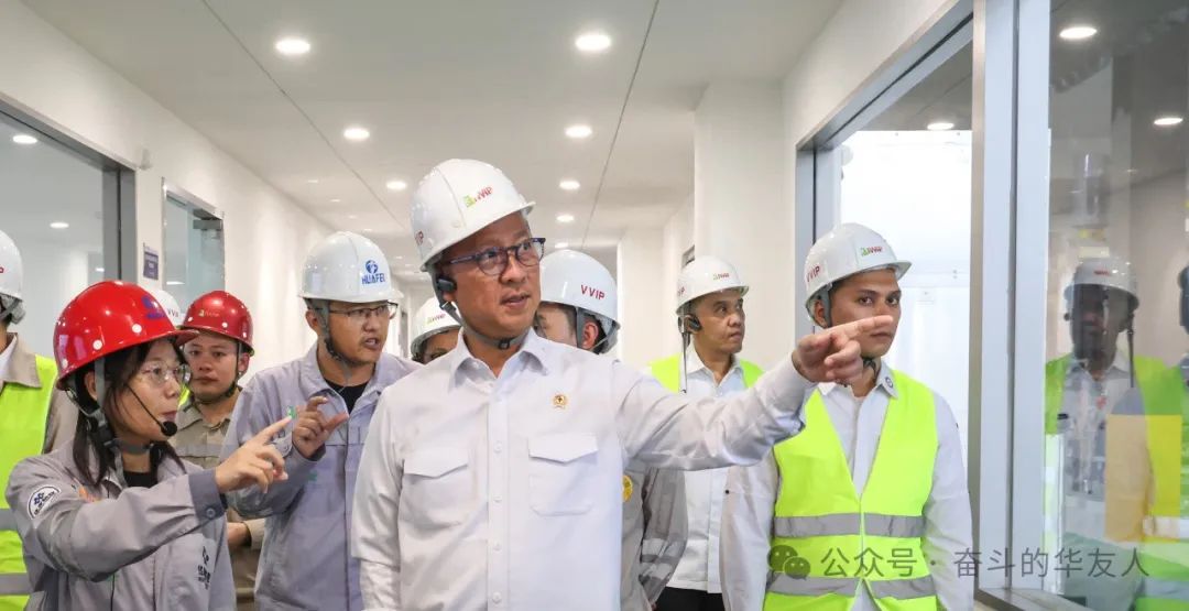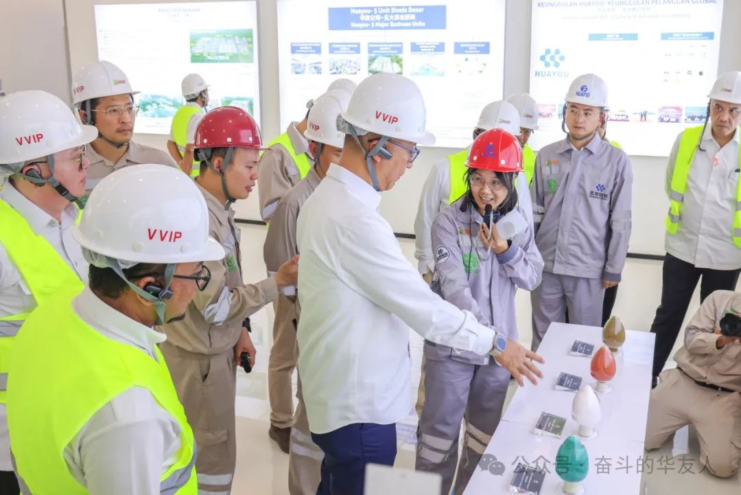 阿古斯·古米旺閣下先后參觀了華飛項(xiàng)目高壓酸浸車(chē)間、產(chǎn)品車(chē)間以及華能項(xiàng)目展廳、質(zhì)量檢測(cè)中心、主控中心和生產(chǎn)車(chē)間,聽(tīng)取了關(guān)于項(xiàng)目概況以及工藝技術(shù)、生產(chǎn)規(guī)模、產(chǎn)能產(chǎn)量、ESG建設(shè)等情況介紹,對(duì)華友在印尼一系列項(xiàng)目的成功落地投產(chǎn)表示祝賀。
