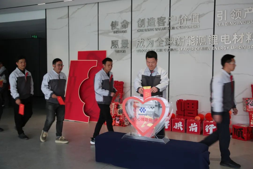 以愛之名,聚光而行。蛇年正月初八,新年開工第一天,新能源產(chǎn)業(yè)集團桐鄉(xiāng)區(qū)域舉辦“華友新能源產(chǎn)業(yè)集團愛心基金”募捐活動。在公司高級副總裁、新能源產(chǎn)業(yè)集團總裁陳要忠的帶領(lǐng)下,廣大干部員工積極相應(yīng)愛心募捐活動。活動現(xiàn)場,一個個紅包伴隨一份份愛心投入募捐箱。