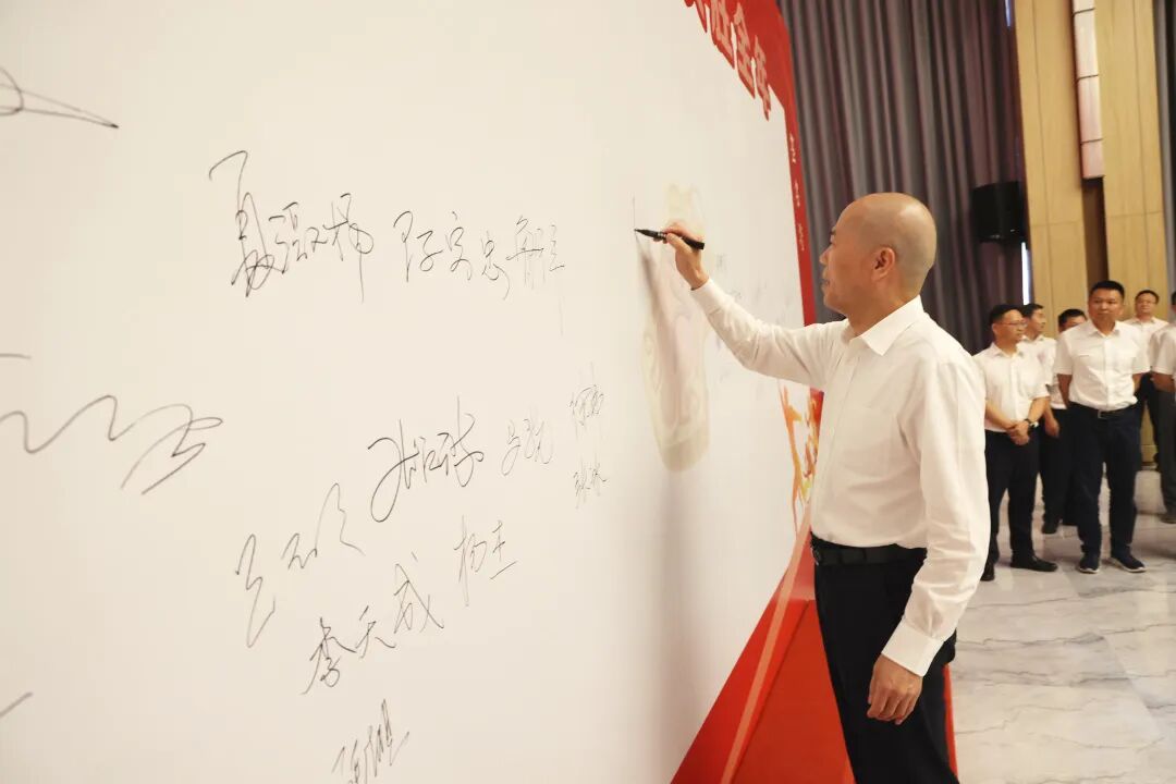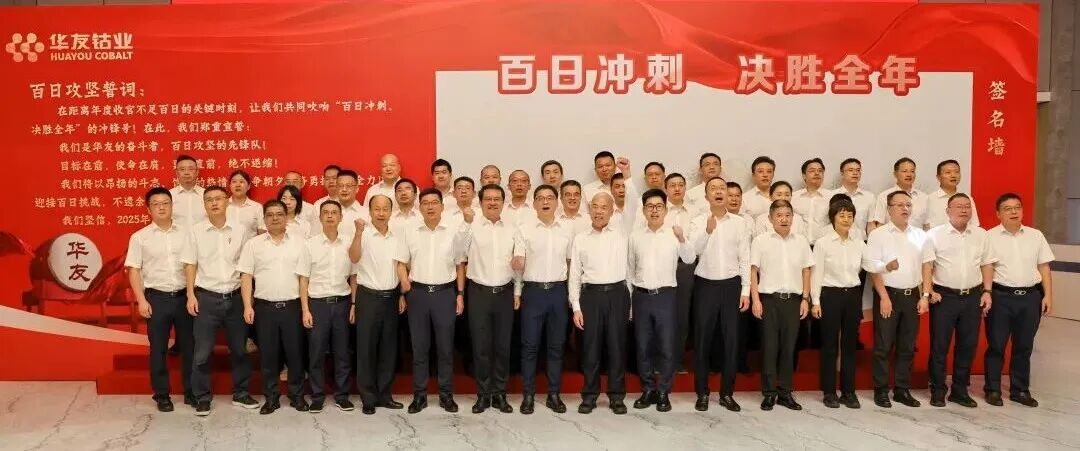 “我承諾:百日沖刺、決勝全年!華友必勝!必勝!必勝!”全體干部在陳雪華董事長(zhǎng)帶領(lǐng)下莊嚴(yán)宣誓,并在簽名墻鄭重簽名。一筆一劃,皆是使命;一字一句,滿載擔(dān)當(dāng),凝聚成“使命必達(dá)”的華友力量!