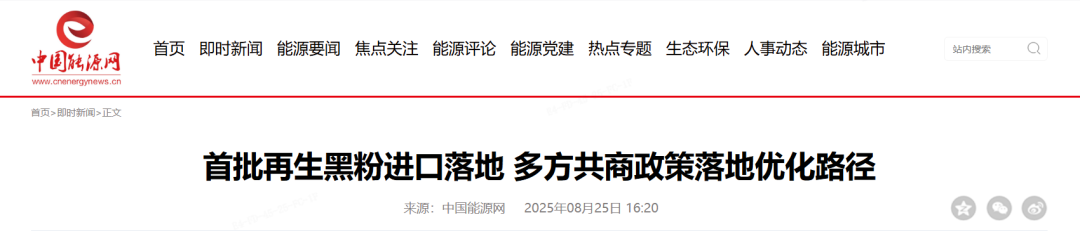 近日,中國日?qǐng)?bào)網(wǎng)、中國能源網(wǎng)、國家能源網(wǎng)、新浪財(cái)經(jīng)等權(quán)威媒體紛紛聚焦中國首批再生黑粉進(jìn)口。中資環(huán)、華友循環(huán)等首批參與單位召開專題交流會(huì),表示將共同推動(dòng)再生黑粉進(jìn)口規(guī)范化、高效化發(fā)展。